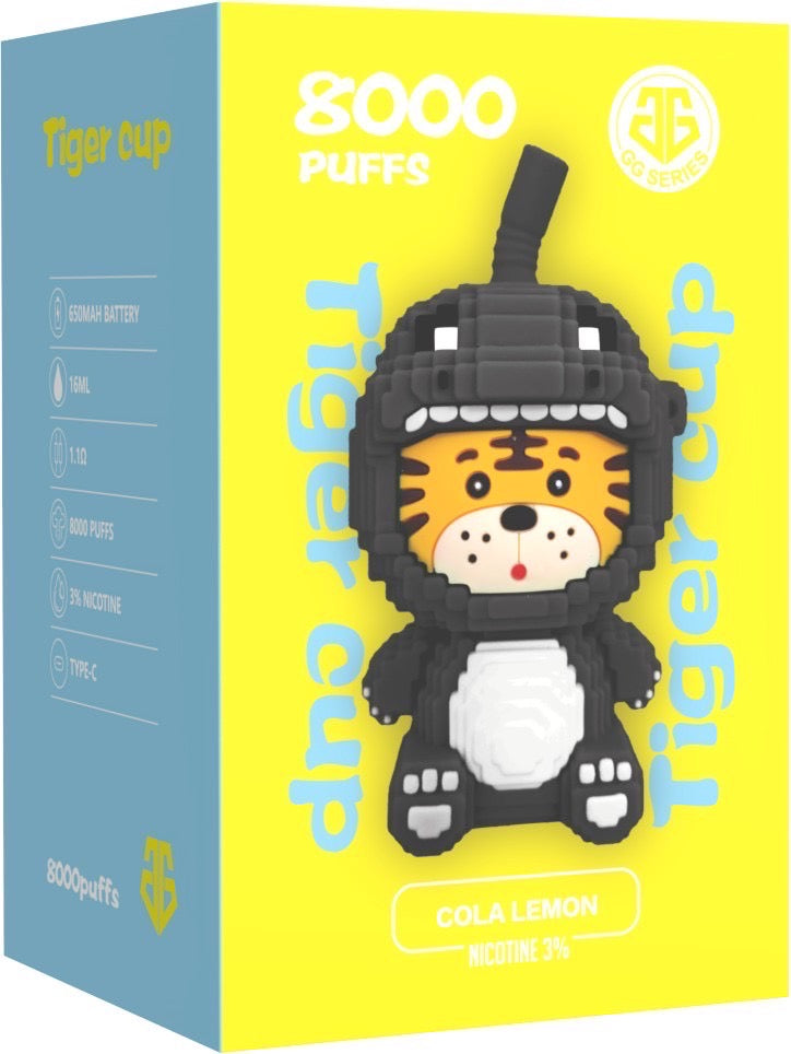 พอตใช้แล้วทิ้ง GG TIGER CUP - 8000 คำ พร้อมส่ง ราคาส่ง 🐯 คิ้วเกินเบอร์ม๊ากกกก น้องมากับนิค3% สูบใด้มากถึง 8000 คำ ความจุ 16ml. แถมยังสามารถชาร์จซ้ำได้ง่ายๆด้วยสายชาร์จ Type-C ความจุแบตเตอรี่ 650mAh เห็นน้องน่ารักแบบนี้แต่น้องทนทานมากน๊า กลิ่นชัด คอยล์ Mesh 1.1Ohm(ตาข่าย) ควันเยอะกว่าพอตใช้แล้วทิ้งทั่วไป