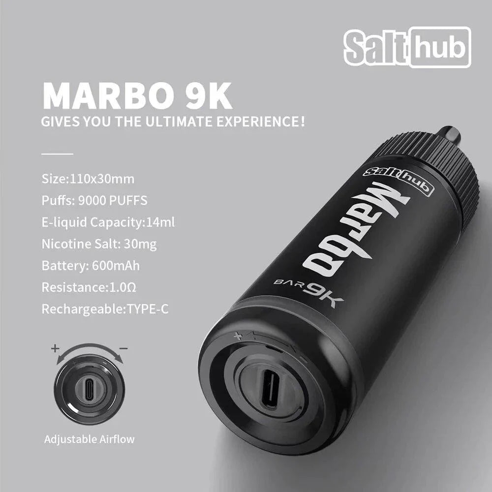 พอตใช้แล้วทิ้งสุดคุ้มจำนวน 9000 คำ รูปทรงเท่ห์ๆ จากค่าย Salthub ที่ขึ้นชื่อกับน้ำยา Marbo สุดแสนอร่อยและยังมีหัวพอต Marbo Zero อีกหลากหลายกลิ่นอีกด้วย ซึ่งรอบนี้ถือเป็นการเปิดตลาดใหม่สู่วงการพอตใช้แล้วทิ้งของ Salthub กันเลยทีเดียว ตัวพอตจุน้ำยาถึง 14 ml มาพร้อมแบตเตอรี่ขนาด 600 mAh และช่องชาร์จ USB Type-C ภายในใช้คอยล์ ขนาด 1.0 โอห์ม ที่ทำรสชาติออกมาได้ชัดเจนและละมุนสุดๆ